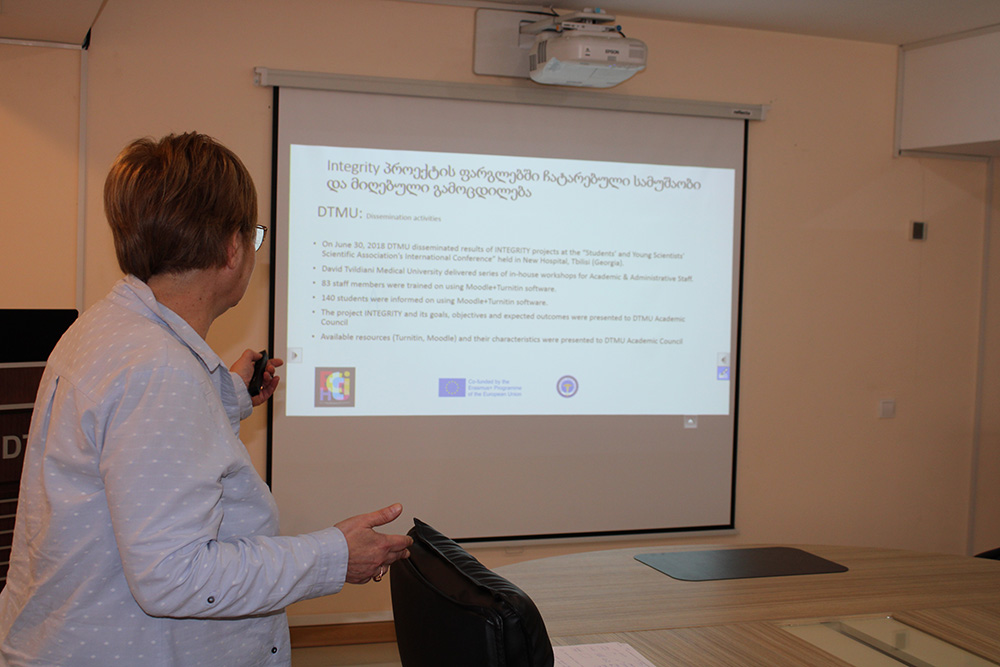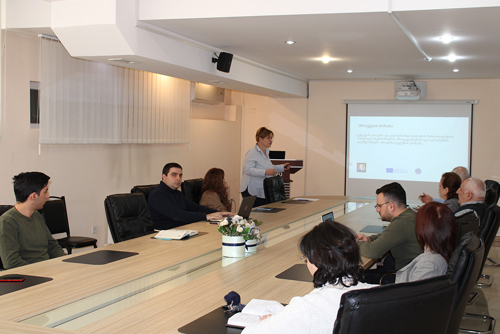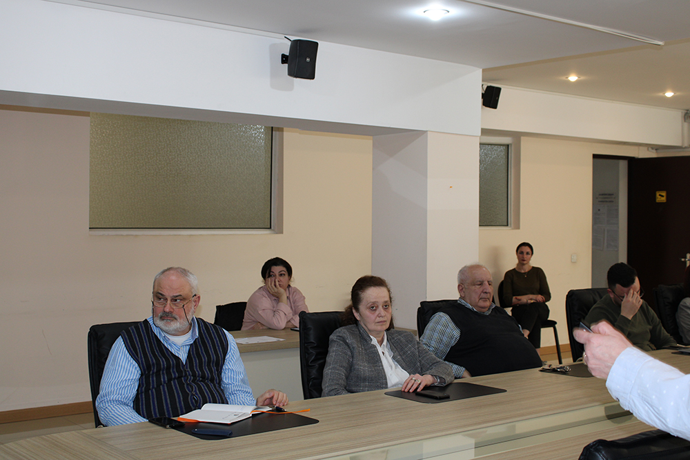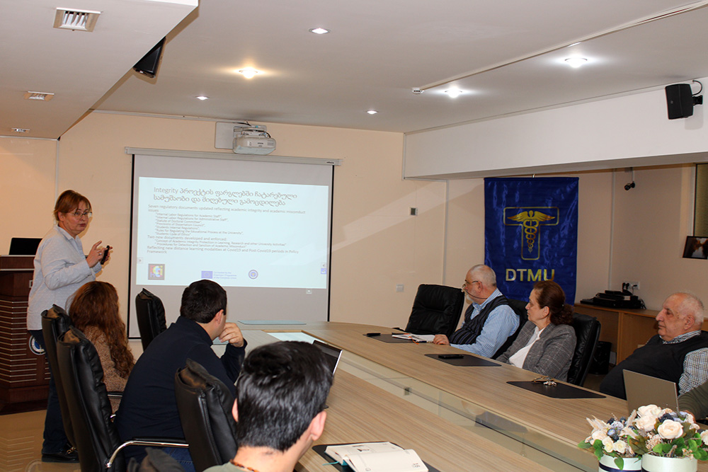 On March 22, 2023 the team of the project āResponsible Conduct of Research ā Research Integrity and Ethics in Georgian Universities (ETHICS)ā met managerial and administrative staff of David Tvildiani Medical University. The project start, its aims and objectives, as well as important content-related and technical issues were presented at the meeting. Activities to ensure project dissemination were discussed among participants of the meeting and dissemination materials design were also presented.