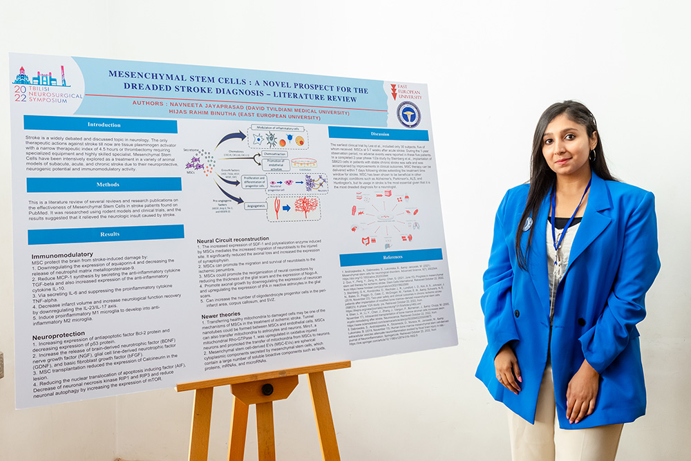 All medical students were offered an opportunity to present their scientific work on the poster session of the Tbilisi Neurosurgical Symposium. A 6th-year student from DTMU, Navneeta Jayaprasad, successfully presented her paper at TNS2022.